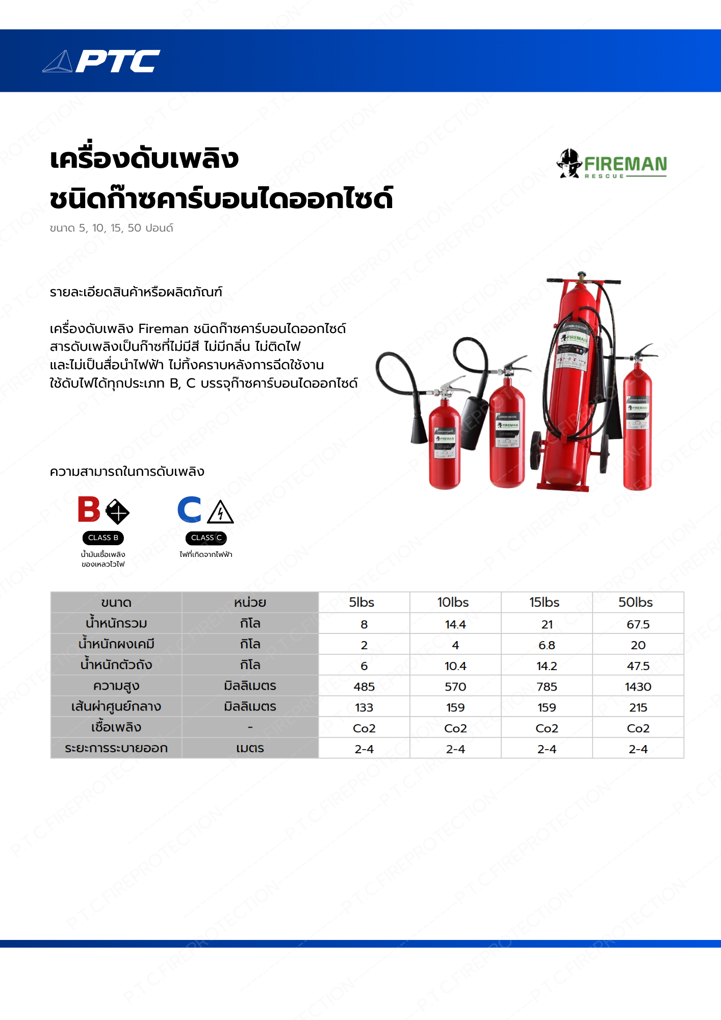 เครื่องดับเพลิง Fireman ชนิดก๊าซคาร์บอนไดออกไซด์ สารดับเพลิงเป็นก๊าซที่ไม่มีสี ไม่มีกลิ่น ไม่ติดไฟ