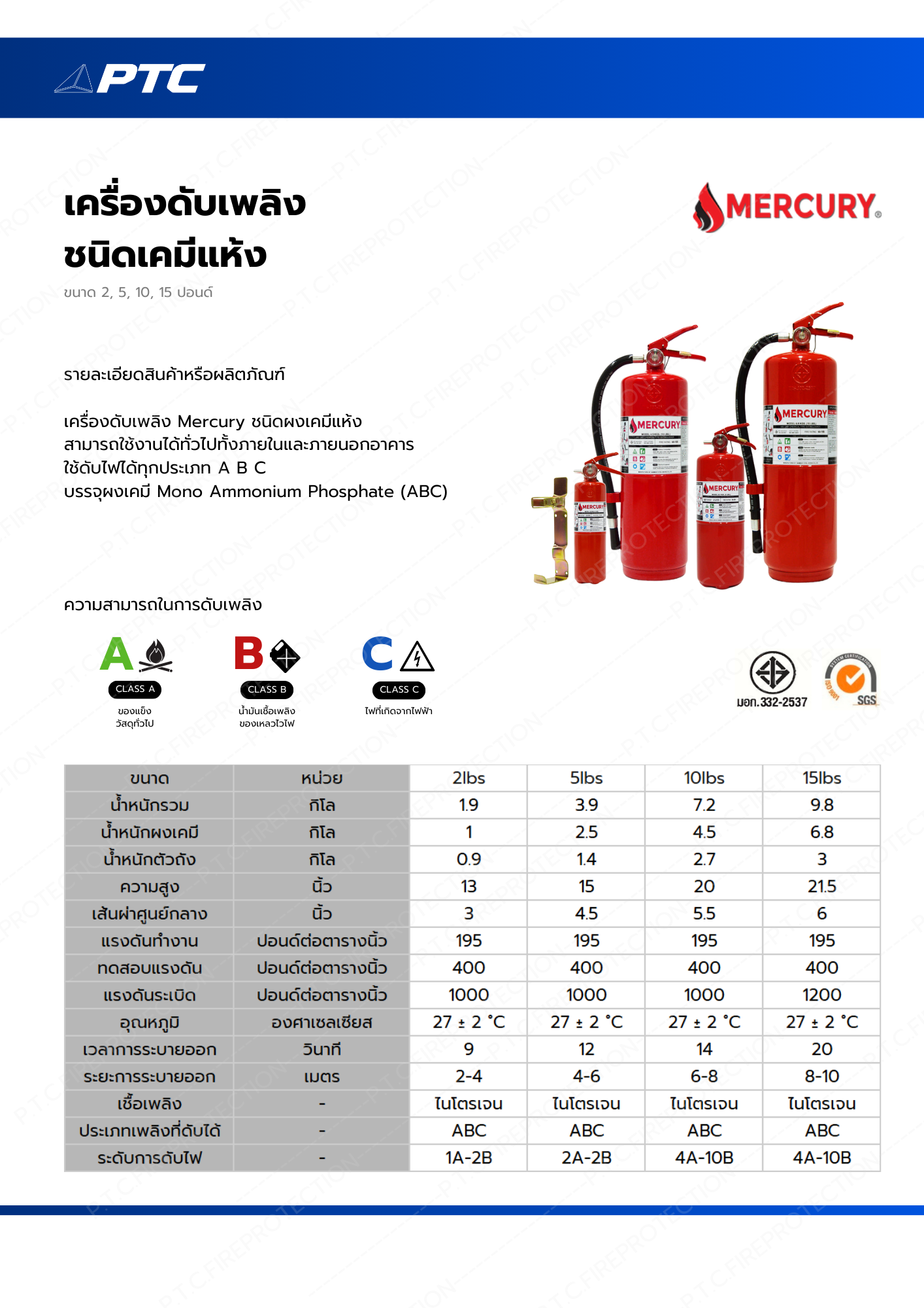 เครื่องดับเพลิง Mercury ชนิดผงเคมีแห้ง