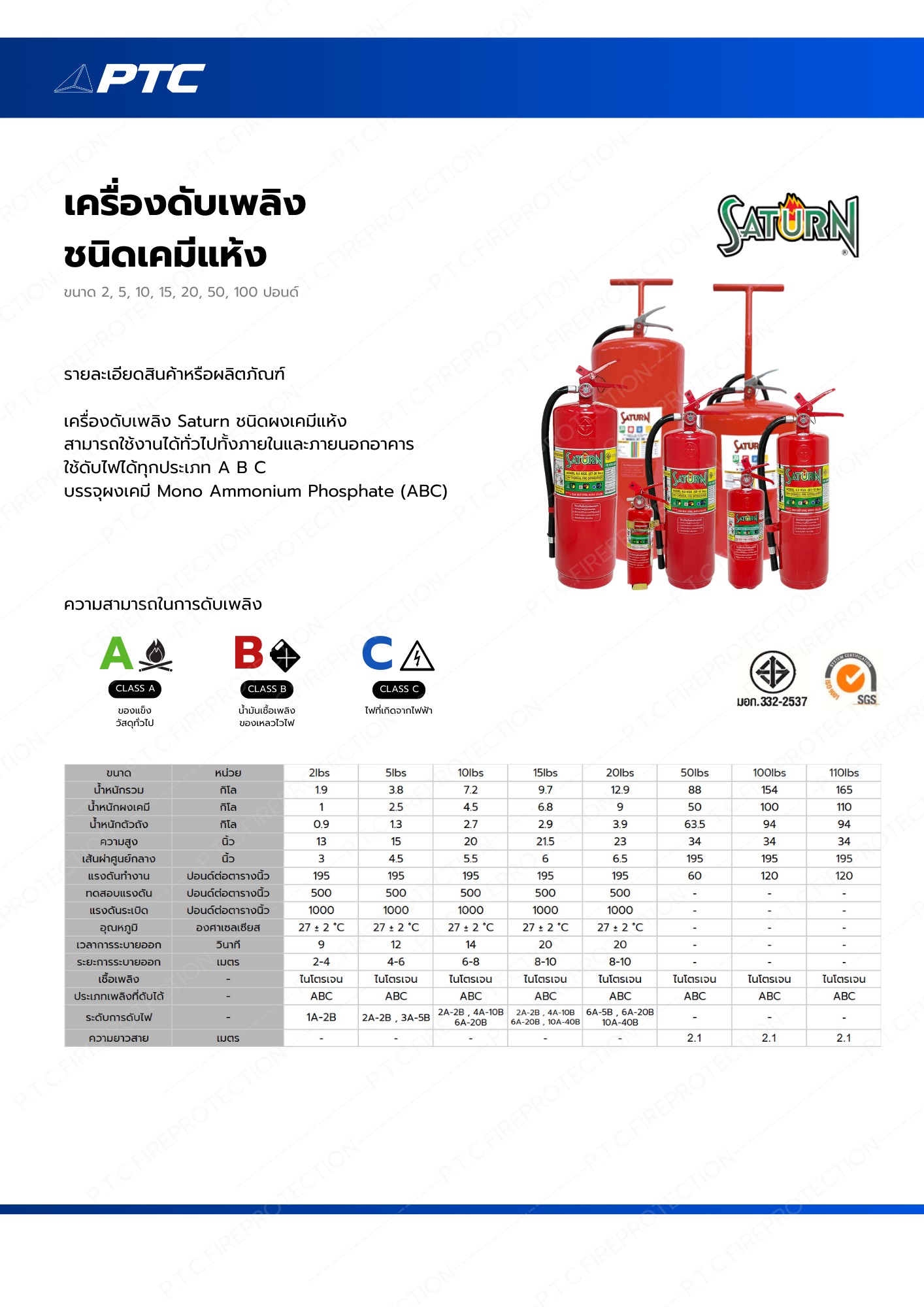 เครื่องดับเพลิง Saturn ชนิดผงเคมีแห้ง