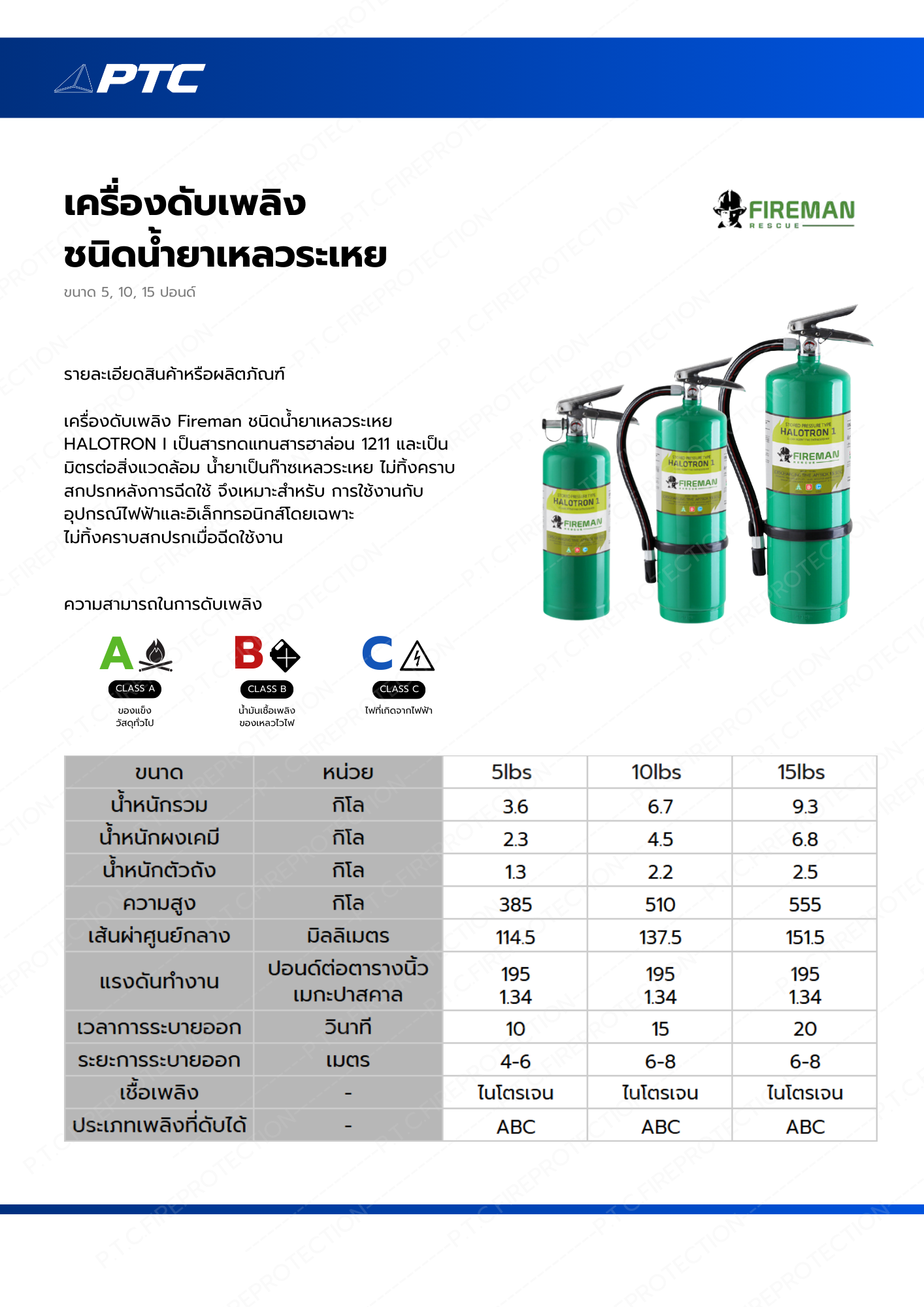 เครื่องดับเพลิง Fireman ชนิดน้ำยาเหลวระเหย HALOTRON I