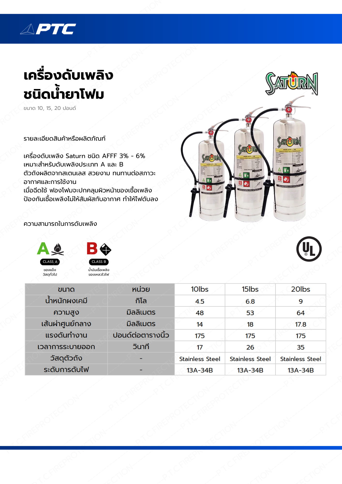 เครื่องดับเพลิง Saturn ชนิด AR-AFFF 3%-6%
