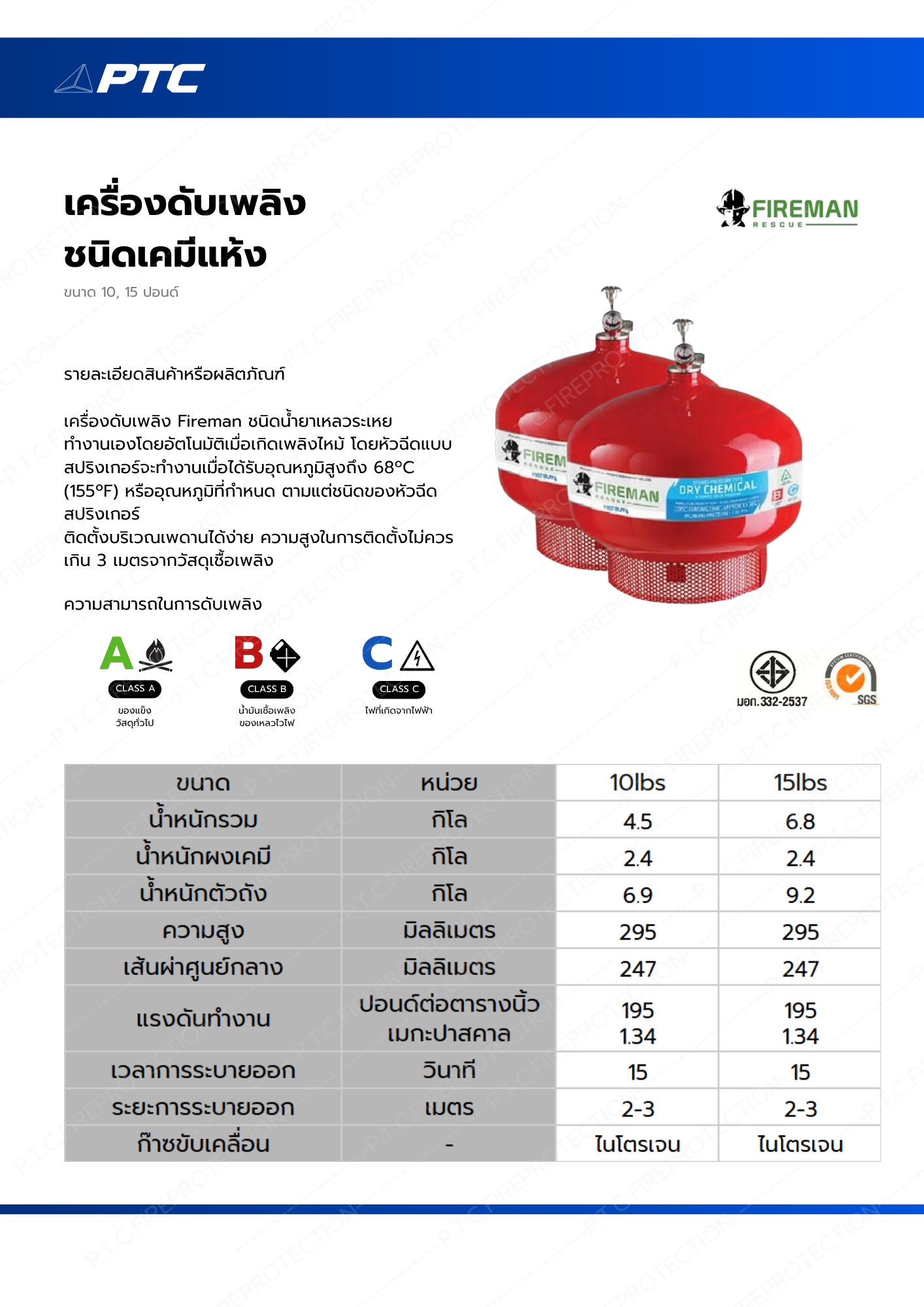 เครื่องดับเพลิงอัตโนมัติ Fireman ชนิดผงเคมีแห้ง