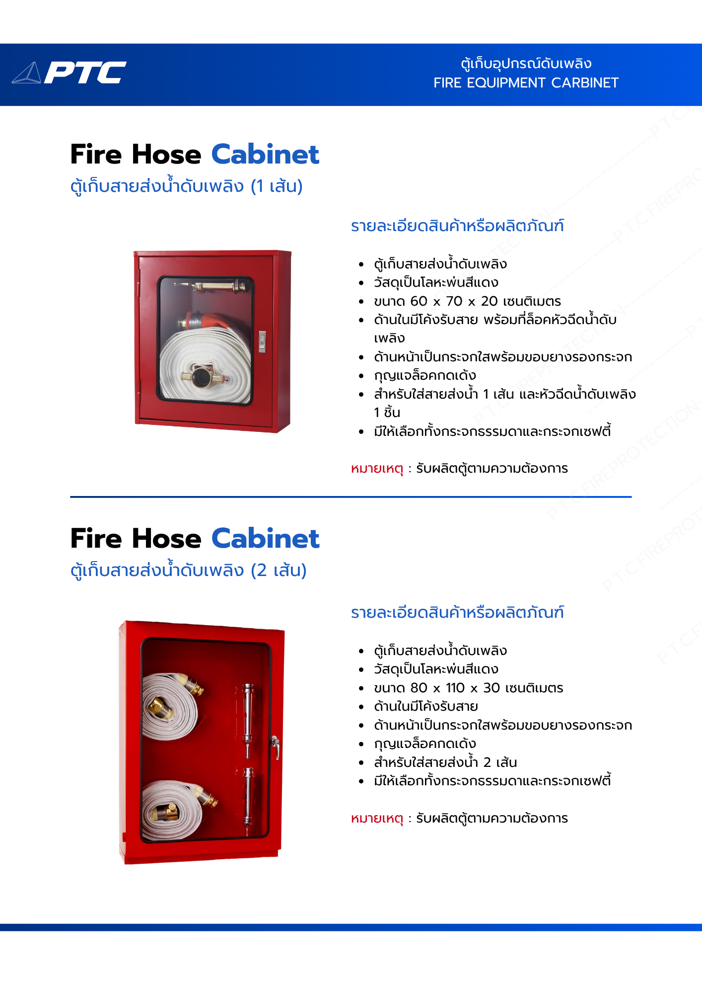 สำหรับใส่สายส่งน้ำ 2 เส้น และหัวฉีดน้ำดับเพลิง 2 ชิ้น