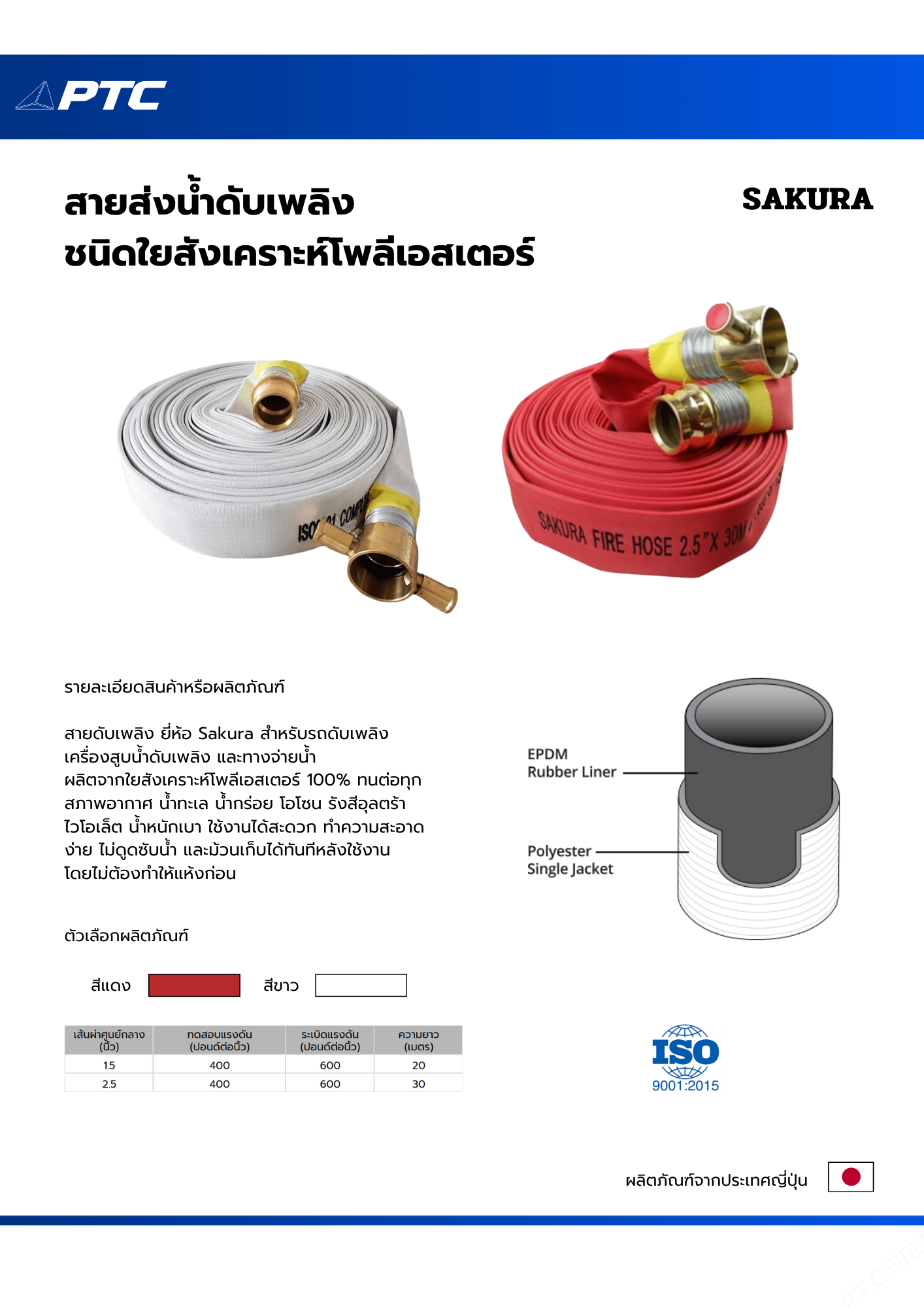 สายดับเพลิง ยี่ห้อ Sakura สำหรับรถดับเพลิง เครื่องสูบน้ำดับเพลิง และทางจ่ายน้ำ