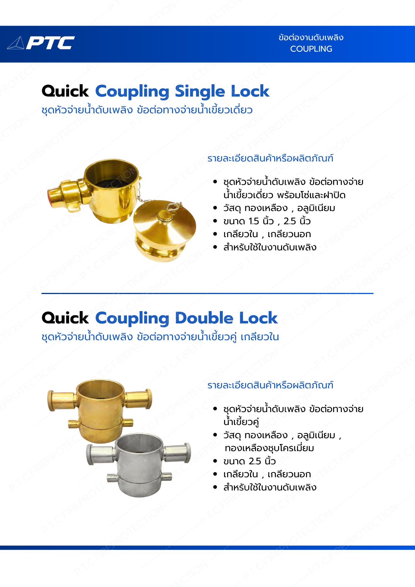 ชุดหัวจ่ายน้ำดับเพลิง ข้อต่อทางจ่ายน้ำเขี้ยวเดี่ยว พร้อมโซ่และฝาปิด วัสดุ ทองเหลือง , อลูมิเนียม ขนาด 1.5 นิ้ว , 2.5 นิ้ว เกลียวใน , เกลียวนอก สำหรับใช้ในงานดับเพลิง