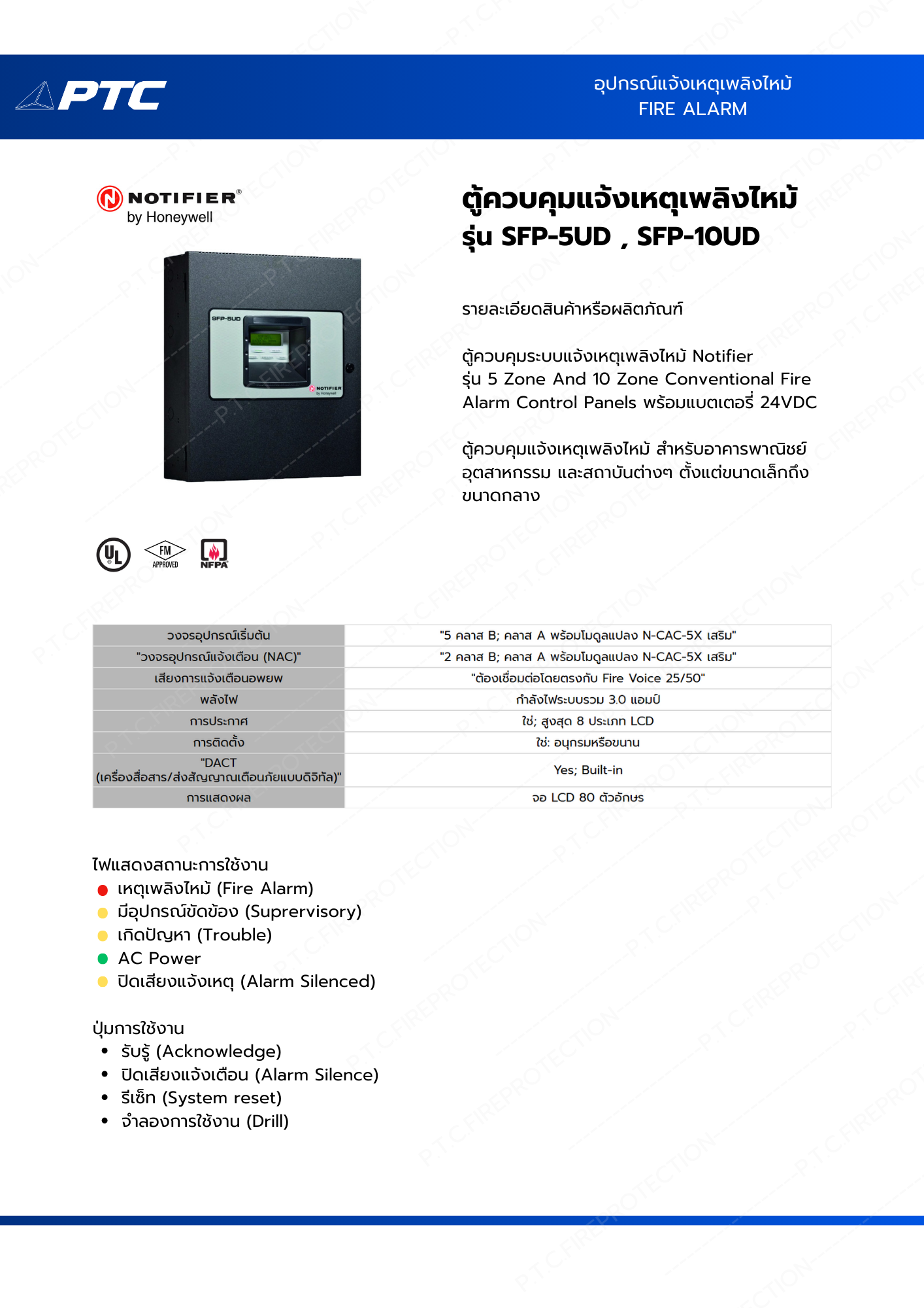 ตู้ควบคุมแจ้งเหตุเพลิงไหม้ สำหรับอาคารพาณิชย์ อุตสาหกรรม และสถาบันต่างๆ ตั้งแต่ขนาดเล็กถึงขนาดกลาง