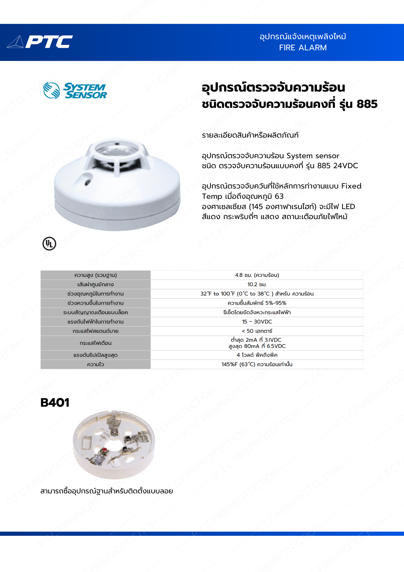 ชนิด ตรวจจับความร้อนแบบคงที่ รุ่น 885 24VDC