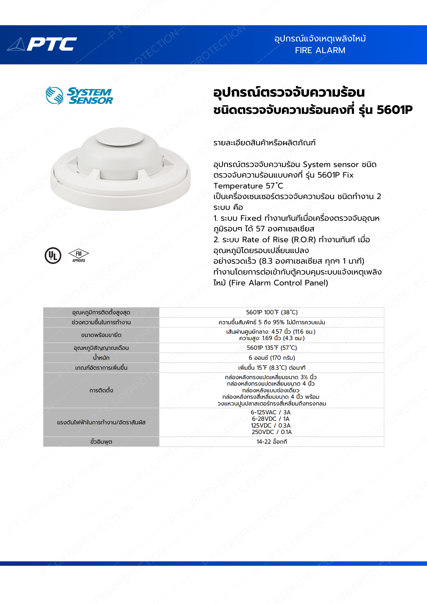 อุปกรณ์ตรวจจับความร้อน System sensor ชนิด ตรวจจับความร้อนแบบคงที่ รุ่น 5601P Fix Temperature 57 ํC