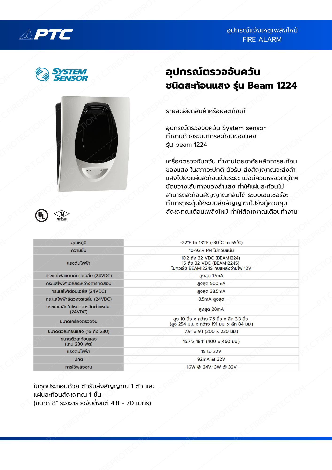 เครื่องตรวจจับนี้จะต้องเชื่อมต่อกับตู้ควบคุมระบบแจ้งเพลิงไหม้ที่มีมาตรฐาน UL เท่านั้น