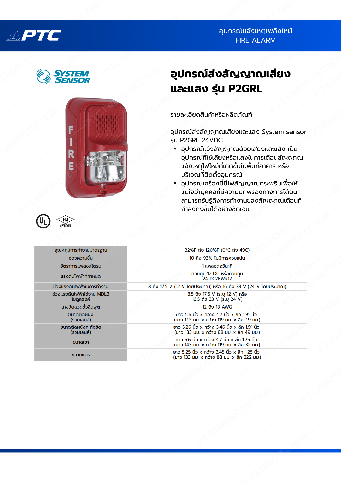 อุปกรณ์ส่งสัญญาณเสียงและแสง System sensor