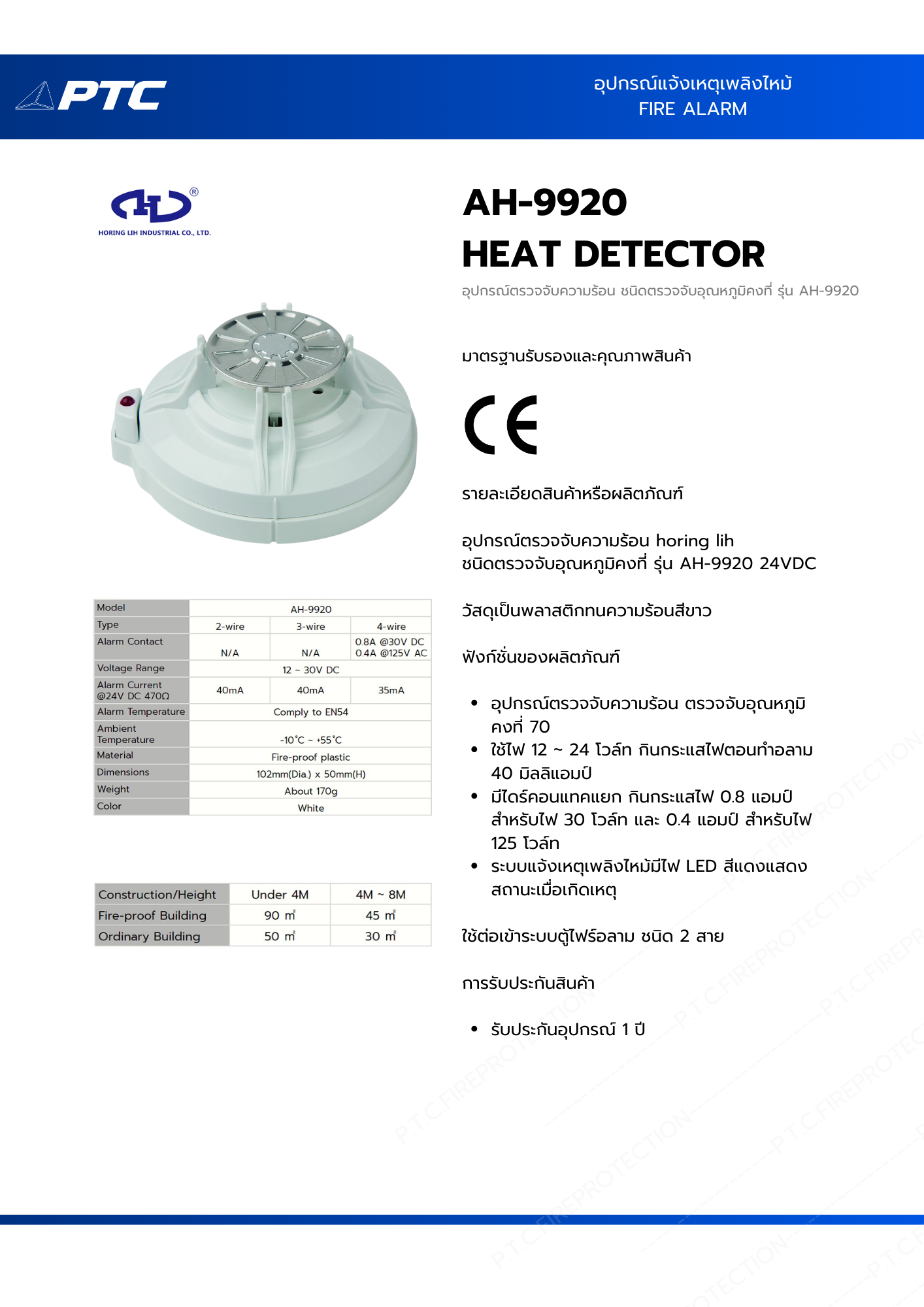 ชนิดตรวจจับอุณหภูมิคงที่ รุ่น AH-9920 24VDC