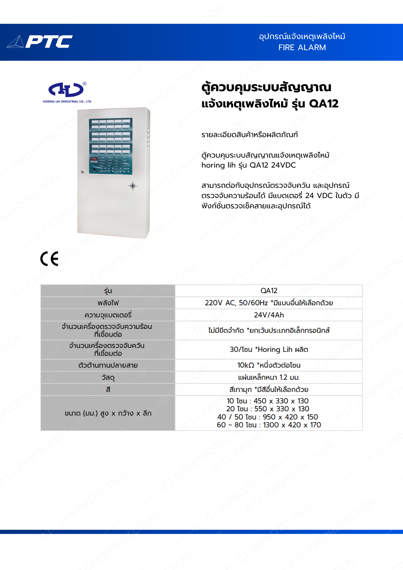 สามารถต่อกับอุปกรณ์ตรวจจับควัน และอุปกรณ์ตรวจจับความร้อนได้ มีแบตเตอรี่ 24 VDC ในตัว มีฟังก์ชั่นตรวจเช็คสายและอุปกรณ์ได้