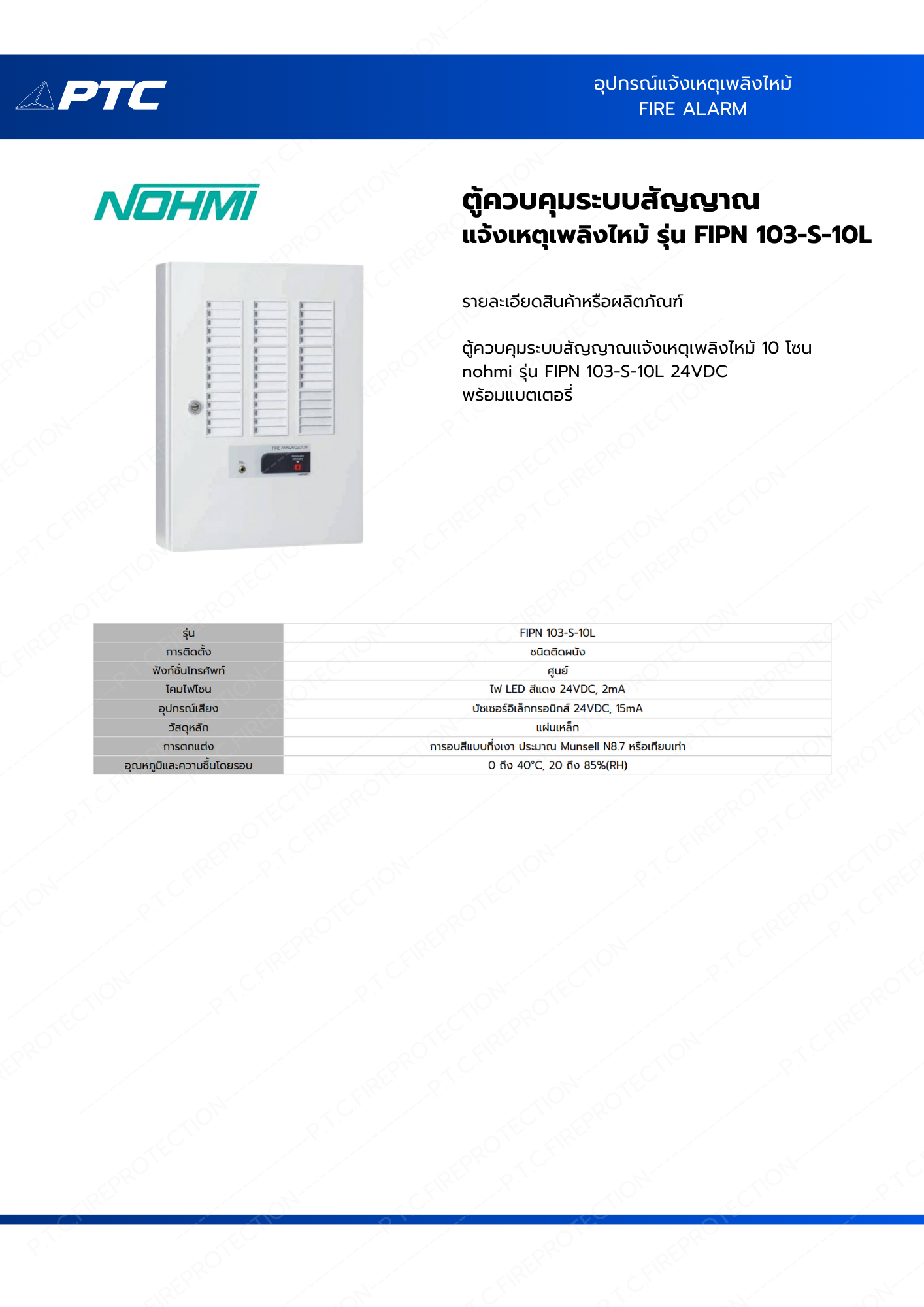 ตู้ควบคุมระบบสัญญาณแจ้งเหตุเพลิงไหม้ nohmi รุ่น FIPN 103-S-10L 24VDC พร้อมแบตเตอรี่