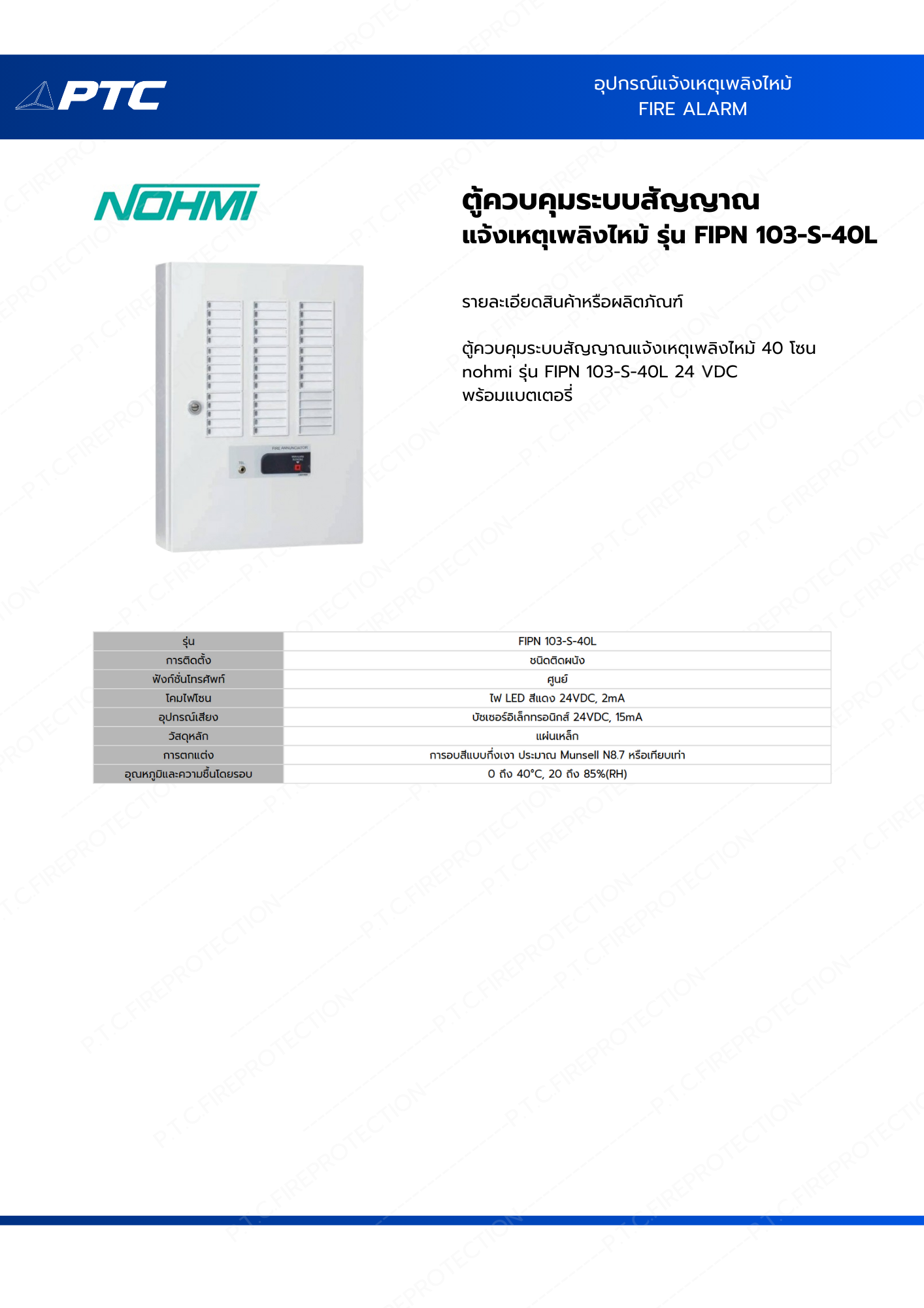 ตู้ควบคุมระบบสัญญาณแจ้งเหตุเพลิงไหม้ nohmi รุ่น FIPN 103-S-40L 24 VDC พร้อมแบตเตอรี่