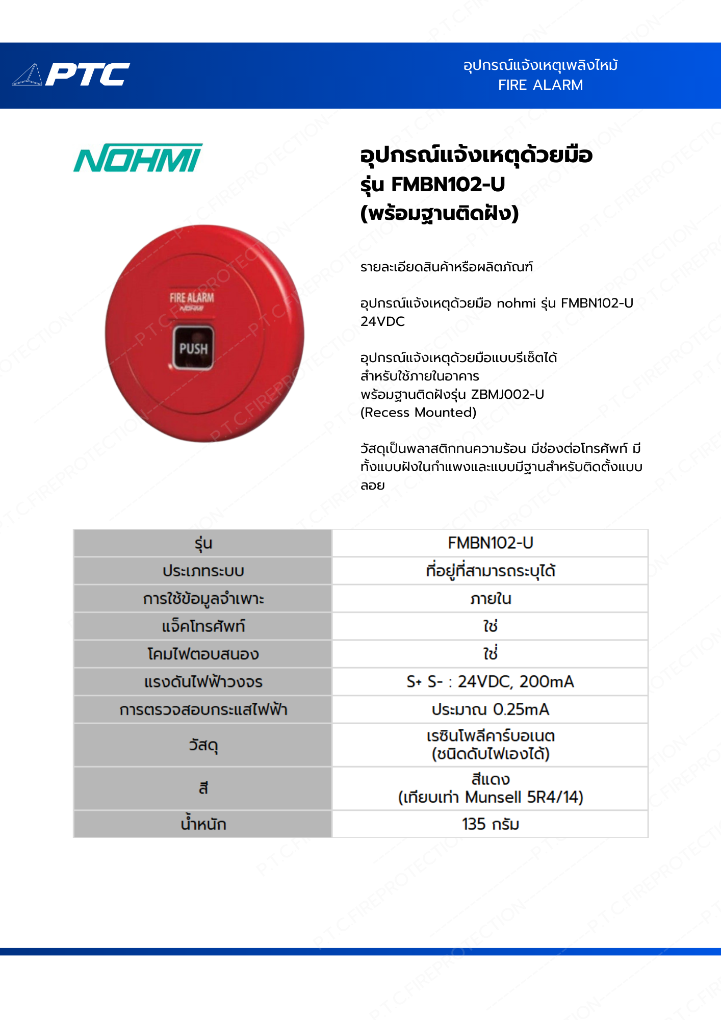 อุปกรณ์แจ้งเหตุด้วยมือ nohmi รุ่น FMBN102-U
