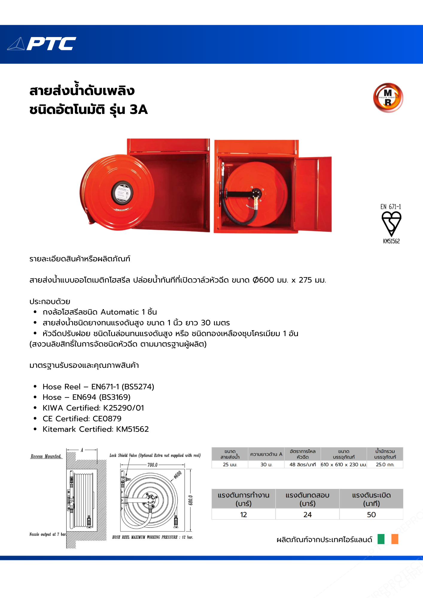 สายส่งน้ำดับเพลิง ชนิดกงล้ออัตโนมัติ ยี่ห้อ Moyne Robert
